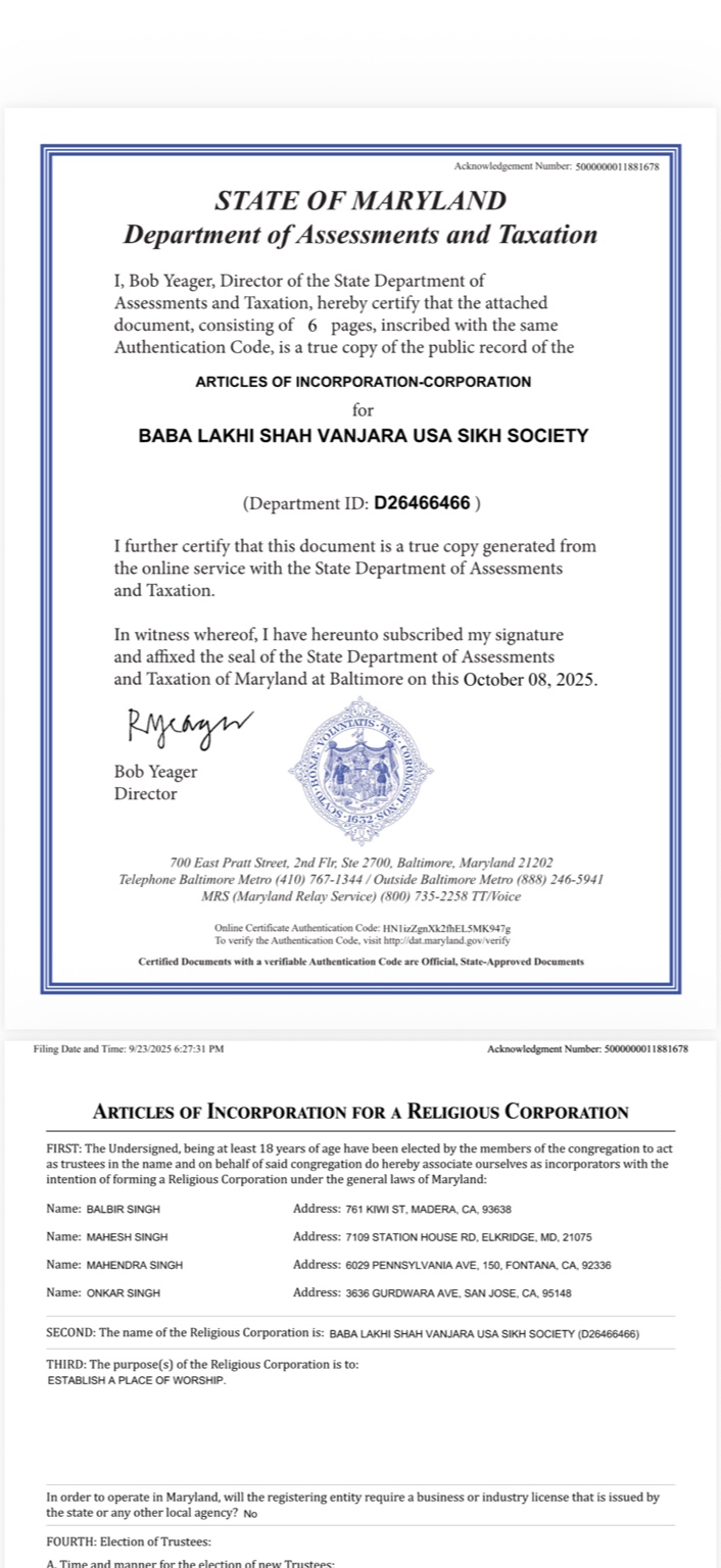 Welcome to Baba Lakhi Shah Ji Vanjara USA Sikh Society